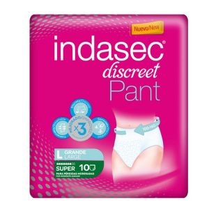 • INDASEC PANT se presenta en versiones SUPER y PLUS, con diferentes niveles de absorción, adaptándose a necesidades diurnas o nocturnas. Su diseño elástico asegura un ajuste cómodo y sin fricciones, permitiendo realizar actividades diarias con total confianza.